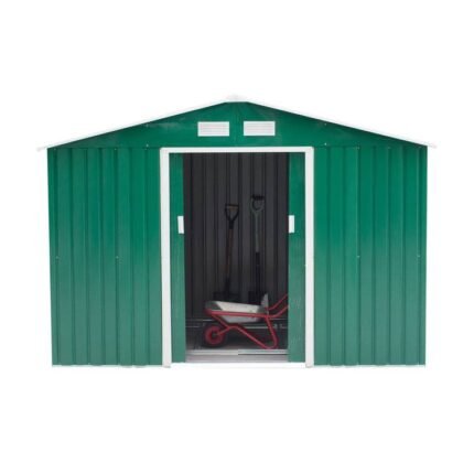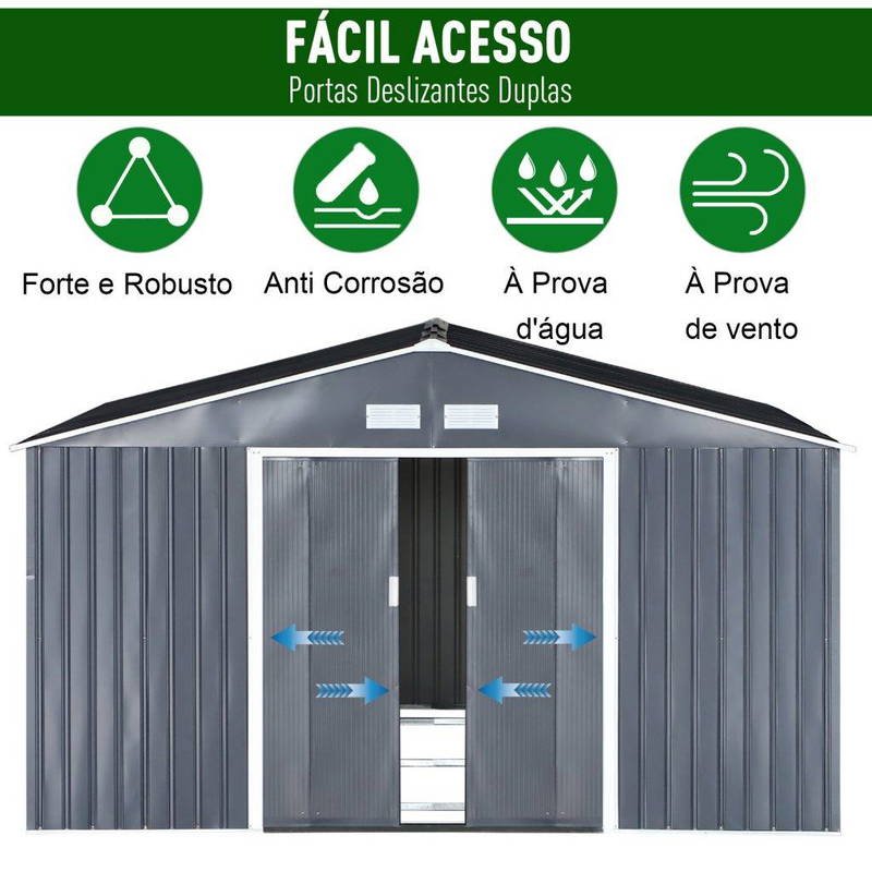 - Amplo espaço interior para guardar materiais e ferramentas de jardinagem, acessórios para a piscina, entre outros Fabricado em aço galvanizado resistente e ideal para uma utilização prolongada O telhado inclinado evita o acúmulo de água da chuva Porta de correr prática de fácil acesso 2 aberturas para promover o fluxo de ar Desenho bloqueável para que você possa adicionar um cadeado (não incluído) Requer montagem