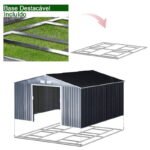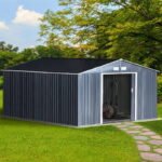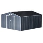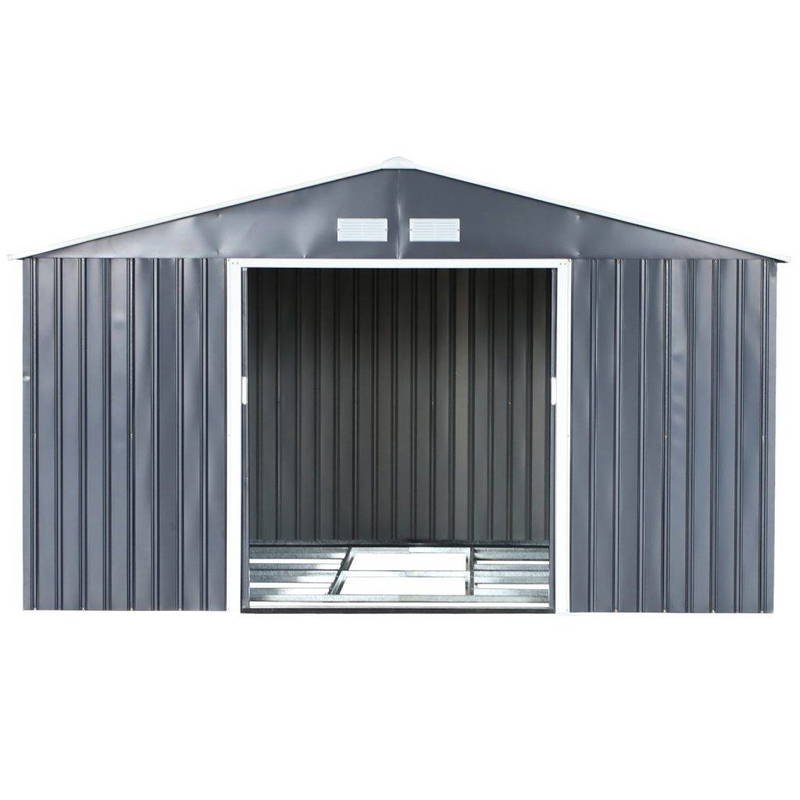 Abrigo de Jardim Exterior Abrigo e Jardim Metálico para Armazenamento de Ferramentas com Base Incluída e 4 Janelas 322x277x192cm Cinza Escuro