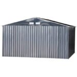 - Abrigo de jardim com amplo espaço de arrumação, para guardar bicicletas, ferramentas de jardim, equipamento de exterior, etc. Estrutura em aço galvanizado para maior resistência. Forte, durável e resistente à ferrugem e corrosão Teto inclinado para evitar acúmulo de água Portas duplas de correr para fácil acesso Porta com fechadura para maior segurança, podendo ser adicionado um cadeado (não incluído) Duas aberturas de ventilação para manter o interior seco e fresco Observe que este abrigo de jardim NÃO inclui o solo Requer montagem