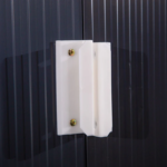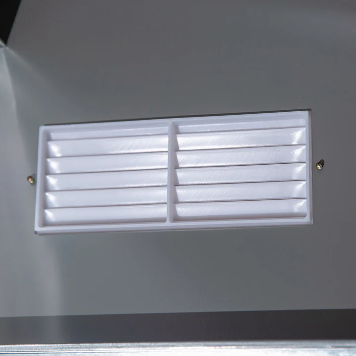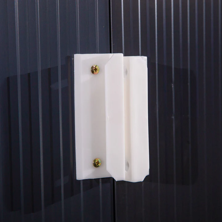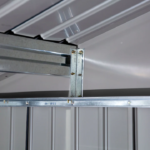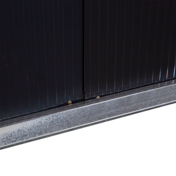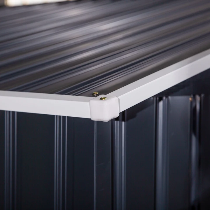 - TETO INCLINADO E PORTA DUPLA: Permite que a água escoe para o solo, evitando a estagnação e promovendo a oxidação. Sua porta de correr dupla facilita o acesso ao interior sem atrapalhar