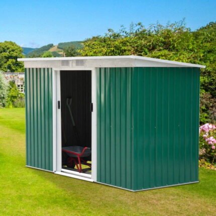 Abrigo Para o Jardim Tipo Barraco em Metal com Base Incluída – 277x130x173cm Verde