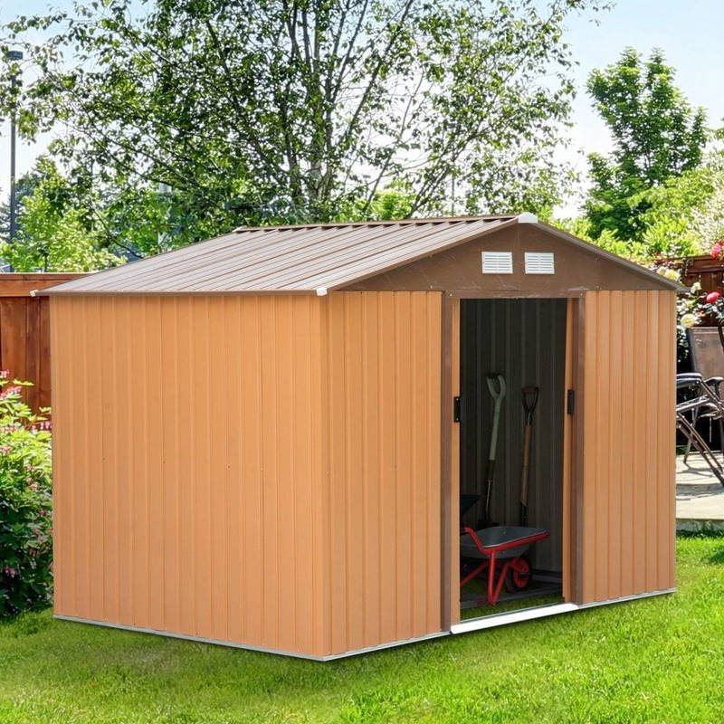 Abrigo para o Jardim Tipo Barraco em Metal – 277x191x192cm Castanho