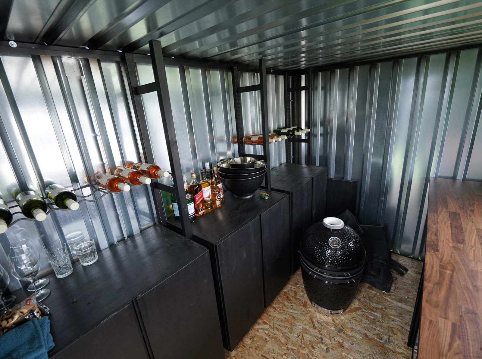 - Design Elegante: Pintados de antracite, os contentores têm um toldo dobrável que confere uma aparência autêntica de bar.