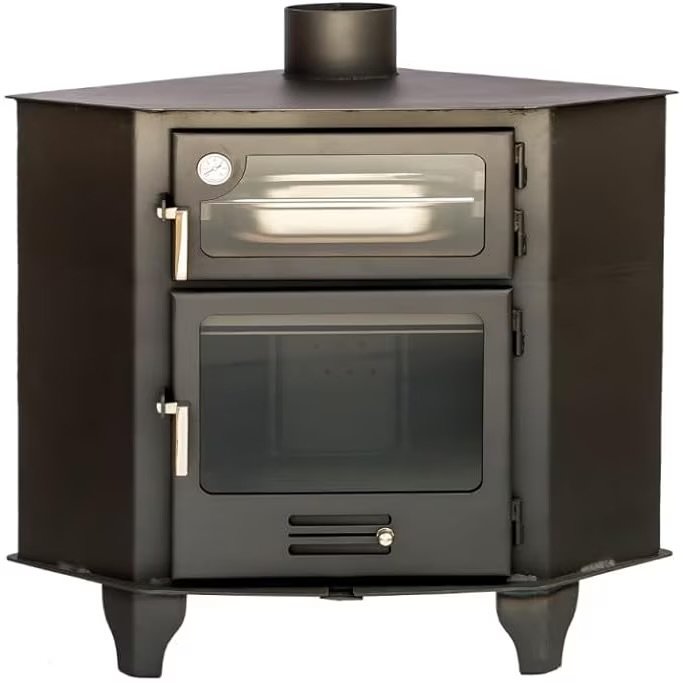 É um Fogão Tradicional com Exaustor e Forno em cima com Grande Espessura. Feito de aço para maior potência térmica e durabilidade. Ele incorpora uma grande grelha de ferro fundido, uma confortável gaveta coletora de cinzas para extração e limpeza, bem como, também inclui um gancho de pôquer. Os puxadores e maçanetas são fabricados em aço inox para maior durabilidade e segurança garantida. Possui saída de fumaça superior de 150 mm. O forno inclui tijolo refratário e um termômetro para controlar a temperatura.