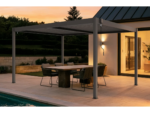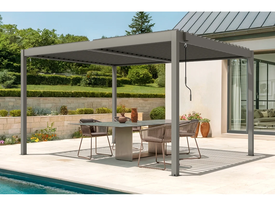 Pérgola bioclimática em alumínio 4x3m – lâminas orientáveis – Taupe, Independente no jardim ou terraço PIANA