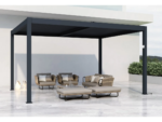 Este abrigo foi feito para oferecer elegância e utilidade ao seu terraço! A sua cor cinza escuro adapta-se perfeitamente a todos os jardins e o seu telhado perfeitamente impermeável pode ser aberto ou fechado graças às suas ripas basculantes acionadas por uma manivela. A drenagem das águas pluviais é realizada através de um inovador sistema de drenagem a partir do interior dos postes.