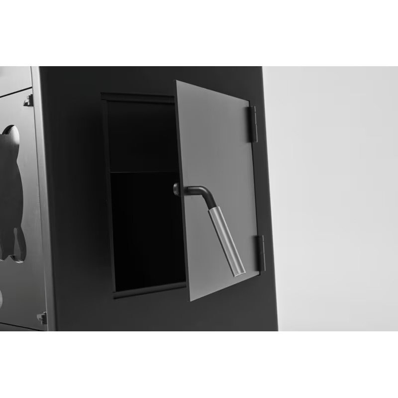 Inclui uma grande grelha de ferro fundido, uma confortável gaveta para extração de cinzas e um gancho de pôquer